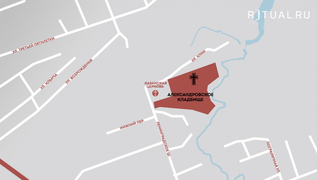 Адрес Александровского кладбища: г. Санкт-Петербург, Пушкинский р-н, пос. Александровская.