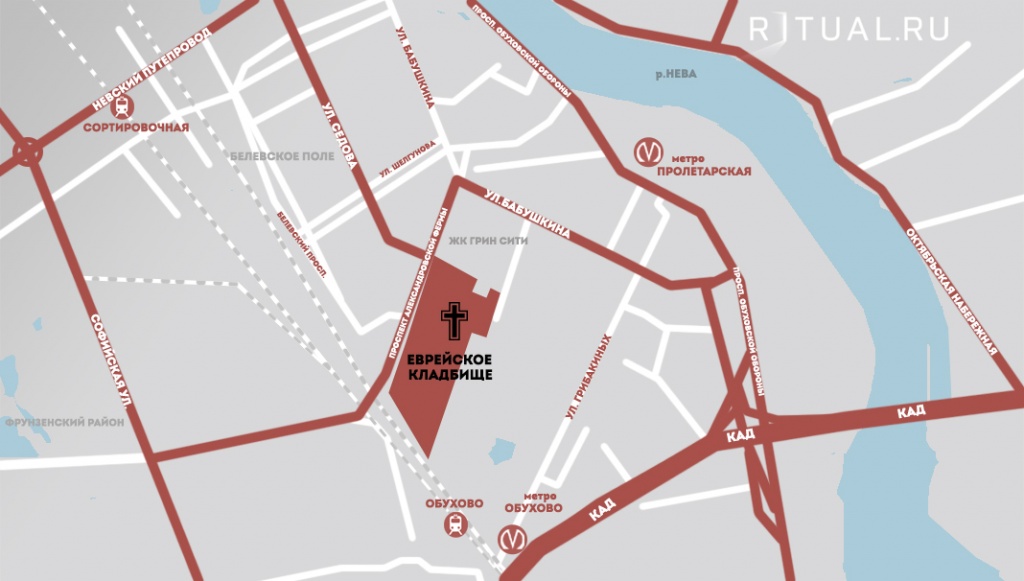 Адрес Еврейского кладбища: г. Санкт-Петербург, д.14 по пр. Александровской фермы.
