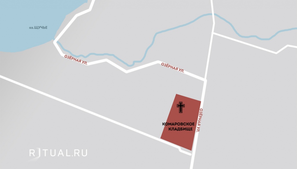 Адрес Комаровского кладбища: п. Комарово, ул. Озёрная, д. 52, литера А.