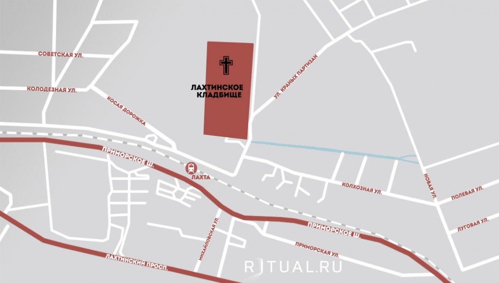 Адрес Лахтинского кладбища: г. Санкт-Петербург, Колпино, д.16 по ул. Красных Партизан.
