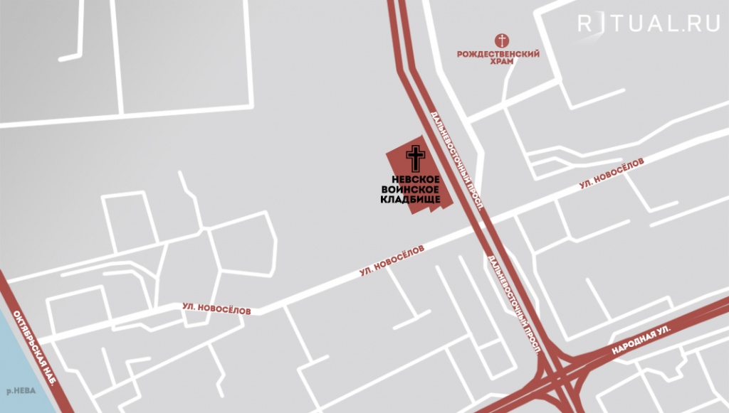 Адрес Невского воинского кладбища: д.53 по Дальневосточному просп.