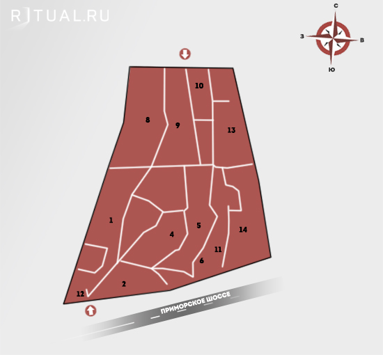 Адрес Сестрорецкого кладбища: г. Санкт-Петербург, г. Сестрорецк, ул. Володарского, 64, лит. А