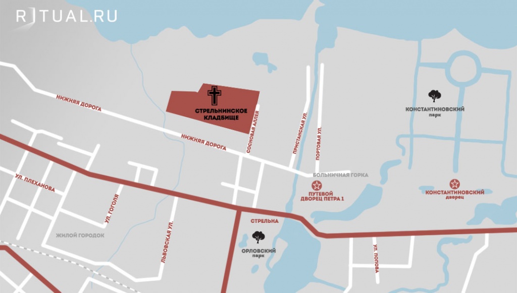 Адрес Стрельнинского кладбища: г. Санкт-Петербург, пос. Стрельна, Сосновая аллея