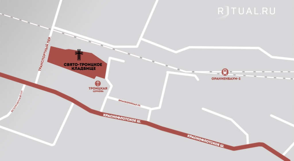 Адрес Свято-Троицкого кладбища: г. Санкт-Петербург, г. Ломоносов, д.10 по ул.Оранжерейной.