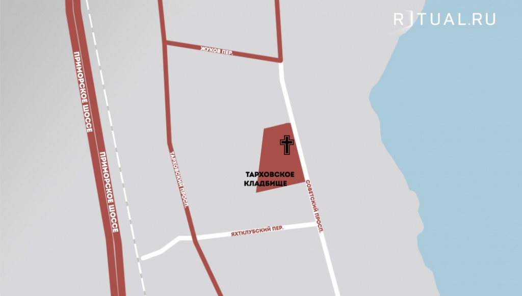 Адрес Тарховского кладбища: г. Сестрорецк, Советский проспект, д.46, участок 1.