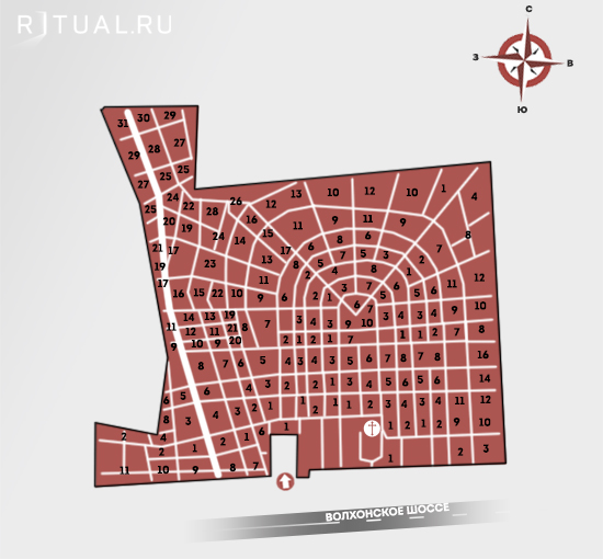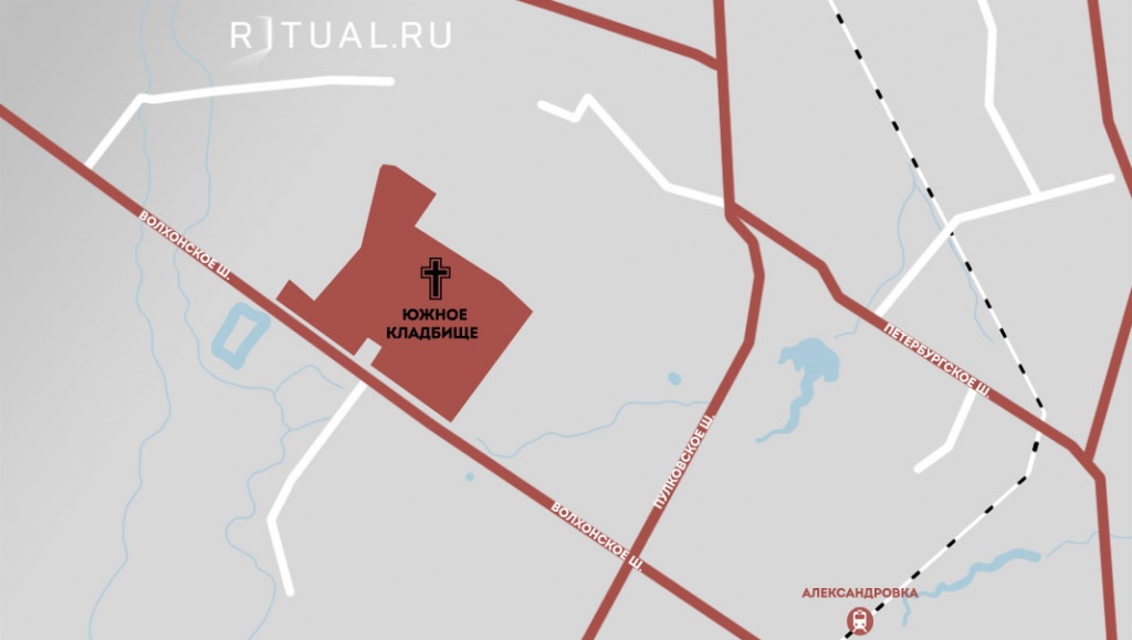 Адрес Южного кладбища: г. Санкт-Петербург, Волхонское шоссе, д. 1