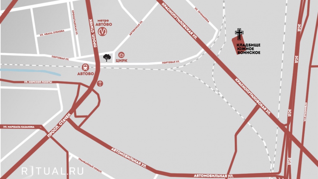 Адрес Южного воинского кладбища: ул. Краснопутиловская.