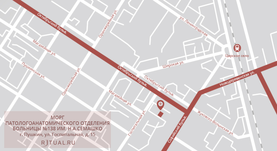 С КАД — на Московское ш., затем на Витебский просп. и Петербургское ш. Через 2,7 км поворот влево, на Октябрьский бульвар, через 1,7 км съезд в правую сторону, к больнице и моргу.