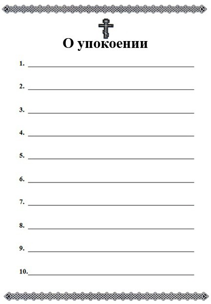 В столбик указываются лица, по которым следует прочесть заупокойную молитву. На каждой строчке одно имя. Писать следует сразу в родительном падеже.