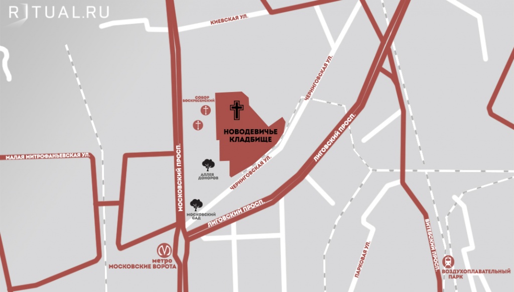 Адрес Новодевичьего кладбища: Московский проспект, д. 100, корп. 2.